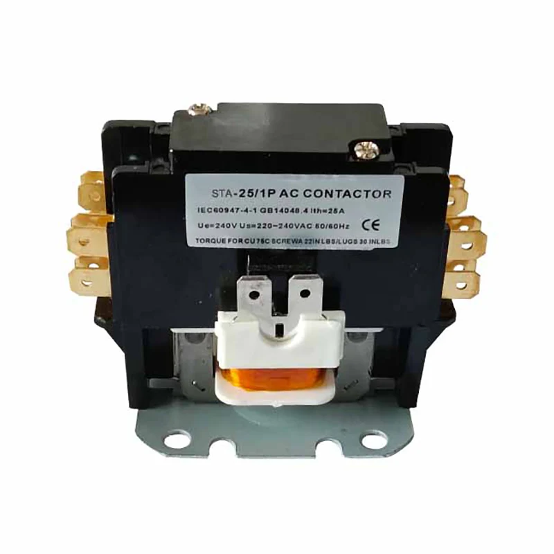 1.5p 25A AIR ACコンディショニングコンタクターのコイルが通電されると、鉄のコアは磁気になり、接触システムを引き付けて閉じ、電源を電源に接続します。コイルが発生すると、鉄のコアは磁気を失い、接触システムはスプリングによって分離され、負荷が電源から切断されます。このようにして、コンタクタは電気荷重のリモート制御を許可します。