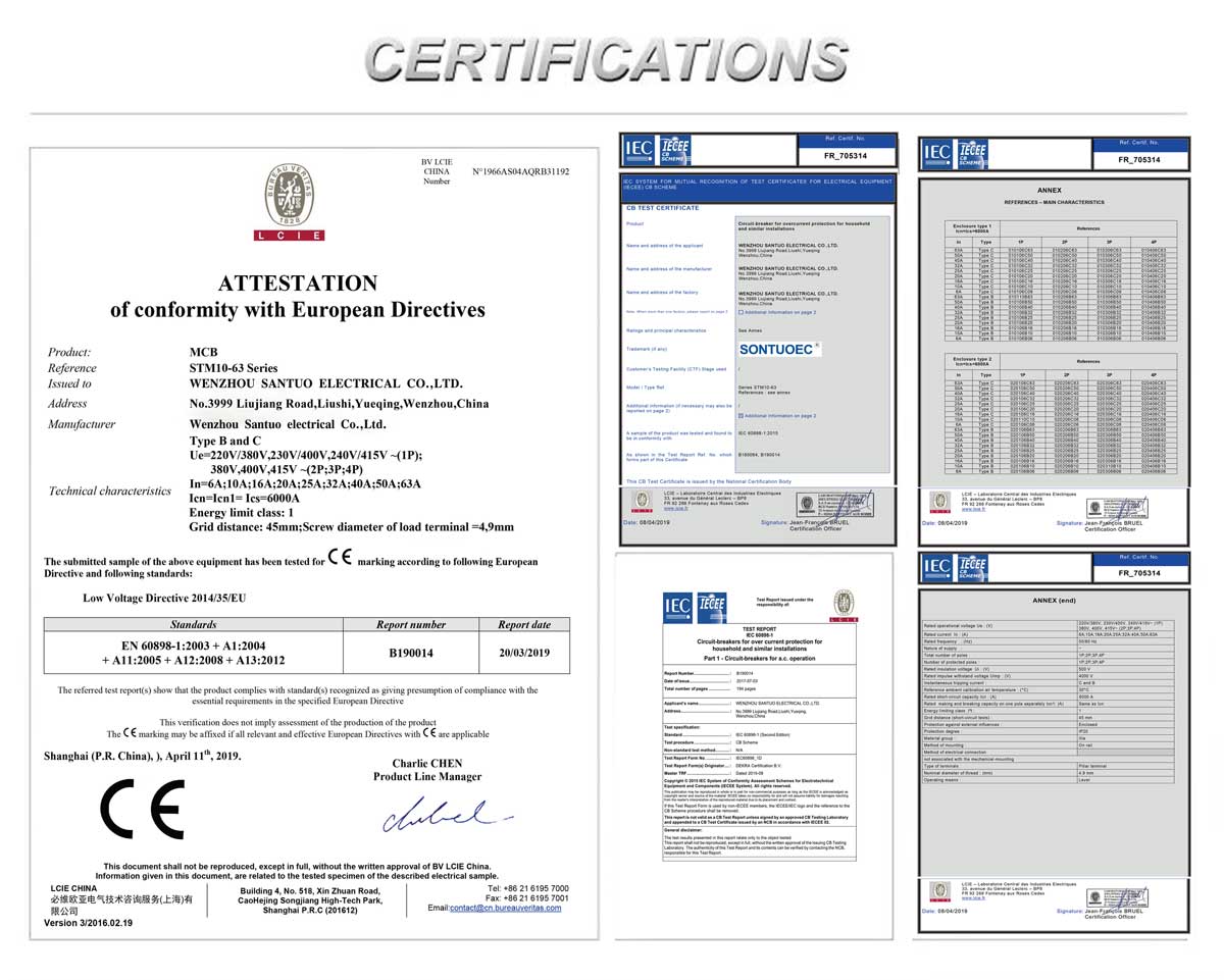 1.選択:MCBを選択するときは、回路の定格電流、電圧レベル、保護特性、漏電保護が必要かどうかなどの要素を考慮する必要があります。選択した STM10-63 小型サーキット ブレーカが地域の電気安全規格および規制に準拠していることを確認することも重要です。