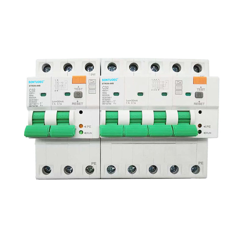 漏れ保護:STRO6-80B RCBOは、回路内の残留電流(つまり、漏れ電流)を検出できます。残留電流が設定しきい値を超えると、RCBO Bモデル2P 4P残留電流回路ブレーカーは、感電災害や電気火災を防ぐために、非常に短期間で回路を遮断します。