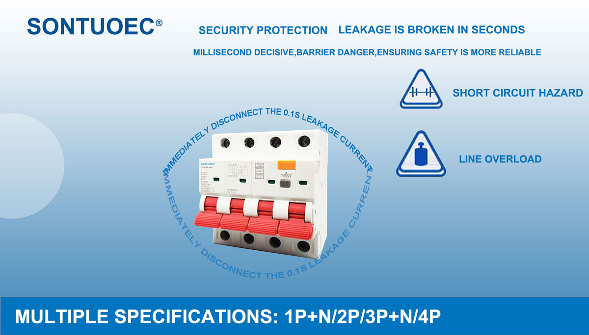 短絡保護:回路で短絡が発生すると、STRO6-80B RCBOは回路を迅速に遮断して、短絡電流が回路と機器に深刻な損傷を引き起こすのを防ぎます。