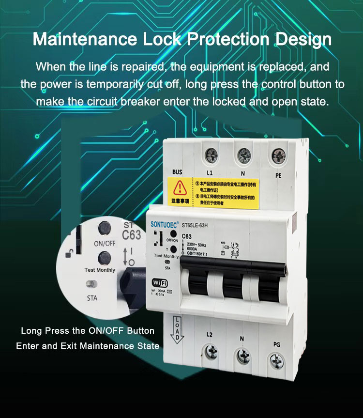 このWiFi 4G TUYA ST65LE-63Hシリーズマルチ機能RCBOインテリジェントサーキットブレーカーは、家庭、工場、SDUENTドミトロイ、農地、ムイシパルワークス、およびインテリオリントなリモートコントロールウォーターポンプ、給湯器、床暖房式などで広く使用できます。